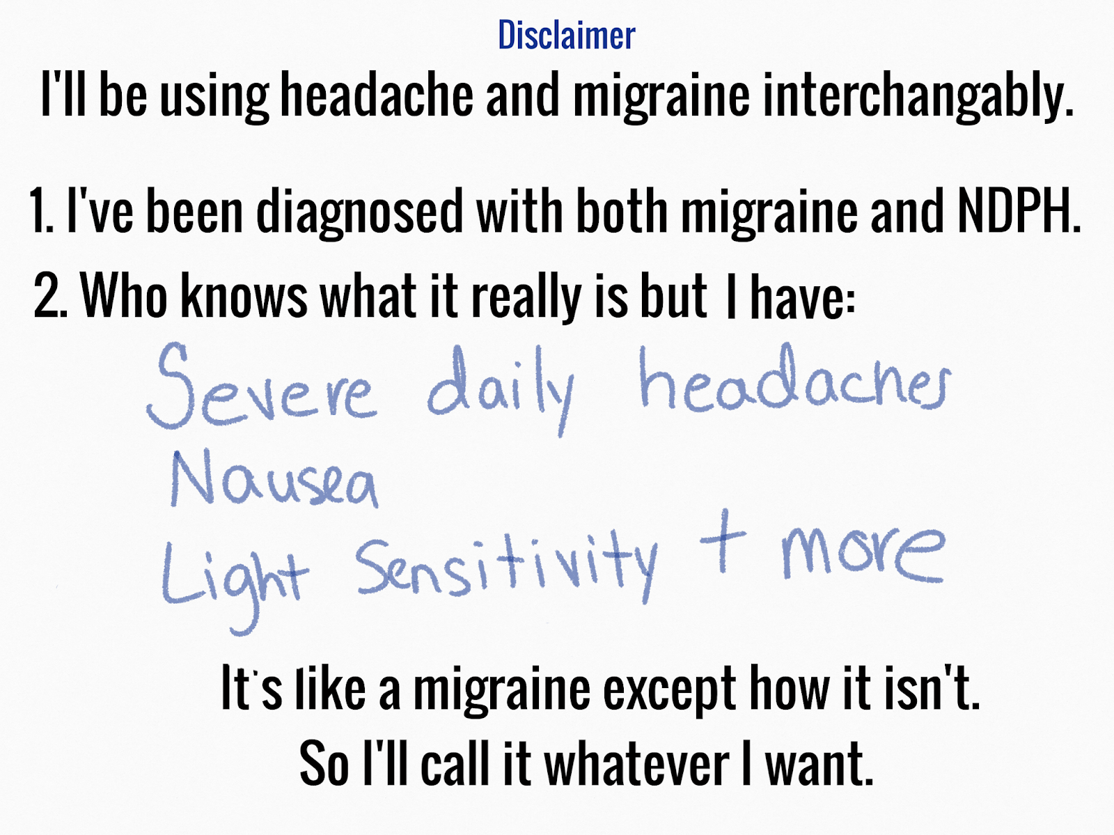 I've had a headache every day for the past 6, no it's 7 years now.